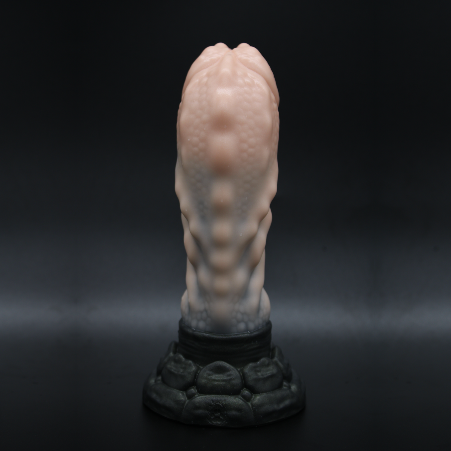 Coated in subtle scales and adorned with unnerving peaks, each thrust will saw away at your senses, kneading your walls with cartilaginous ridges as he rhythmically slides in and out, all while his thick head rubs against your tender "spot" over and over again.