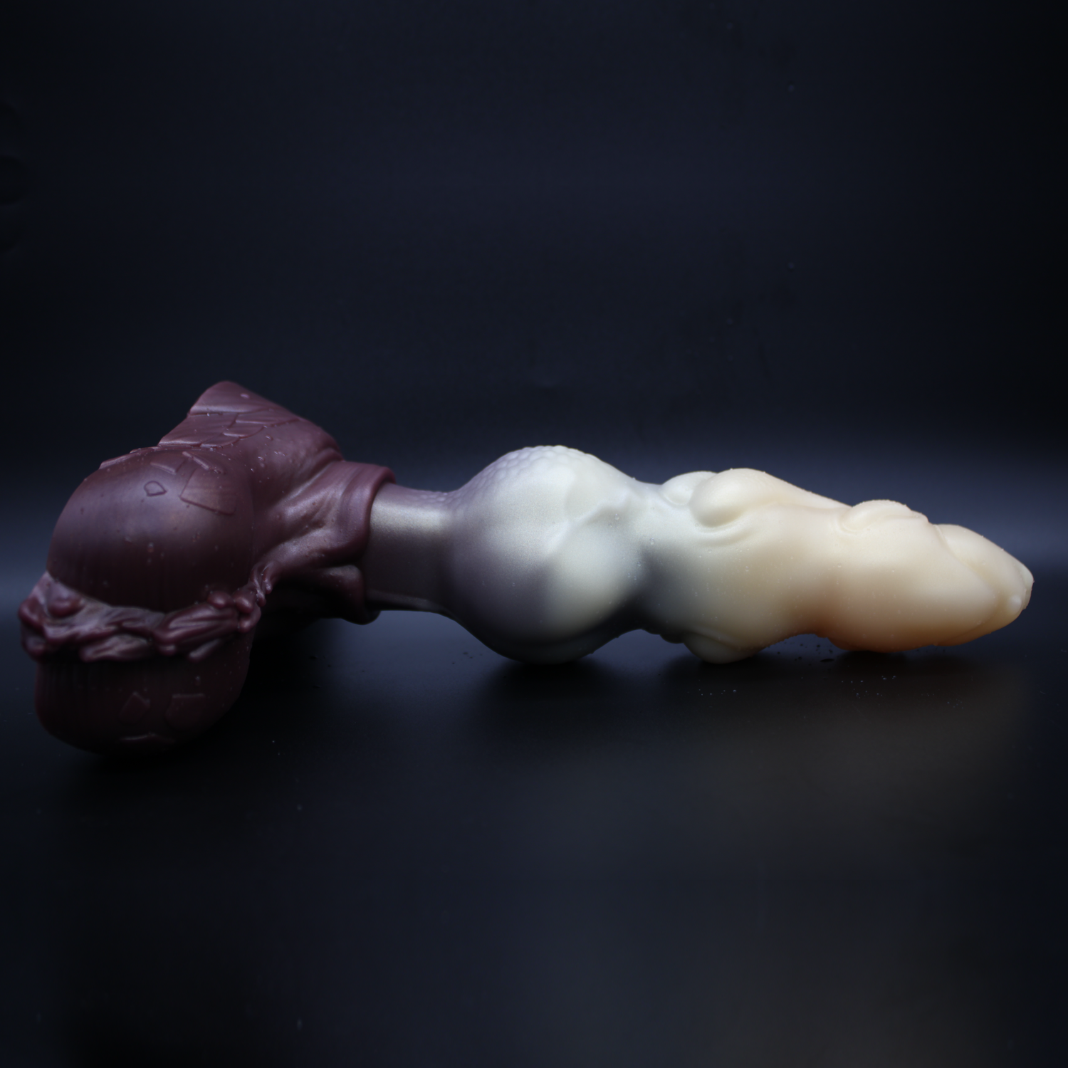 A deformation happens when the mold is under too much pressure or uneven, this will cause variations in the end result of the cured toy. Generally they are small enough to not effect the use or appearance of the toy too much. Sometimes we can get lucky and they turn out better than originally expected or even can be just a unique version of our toy. We discount these anyways because they are not as intended.